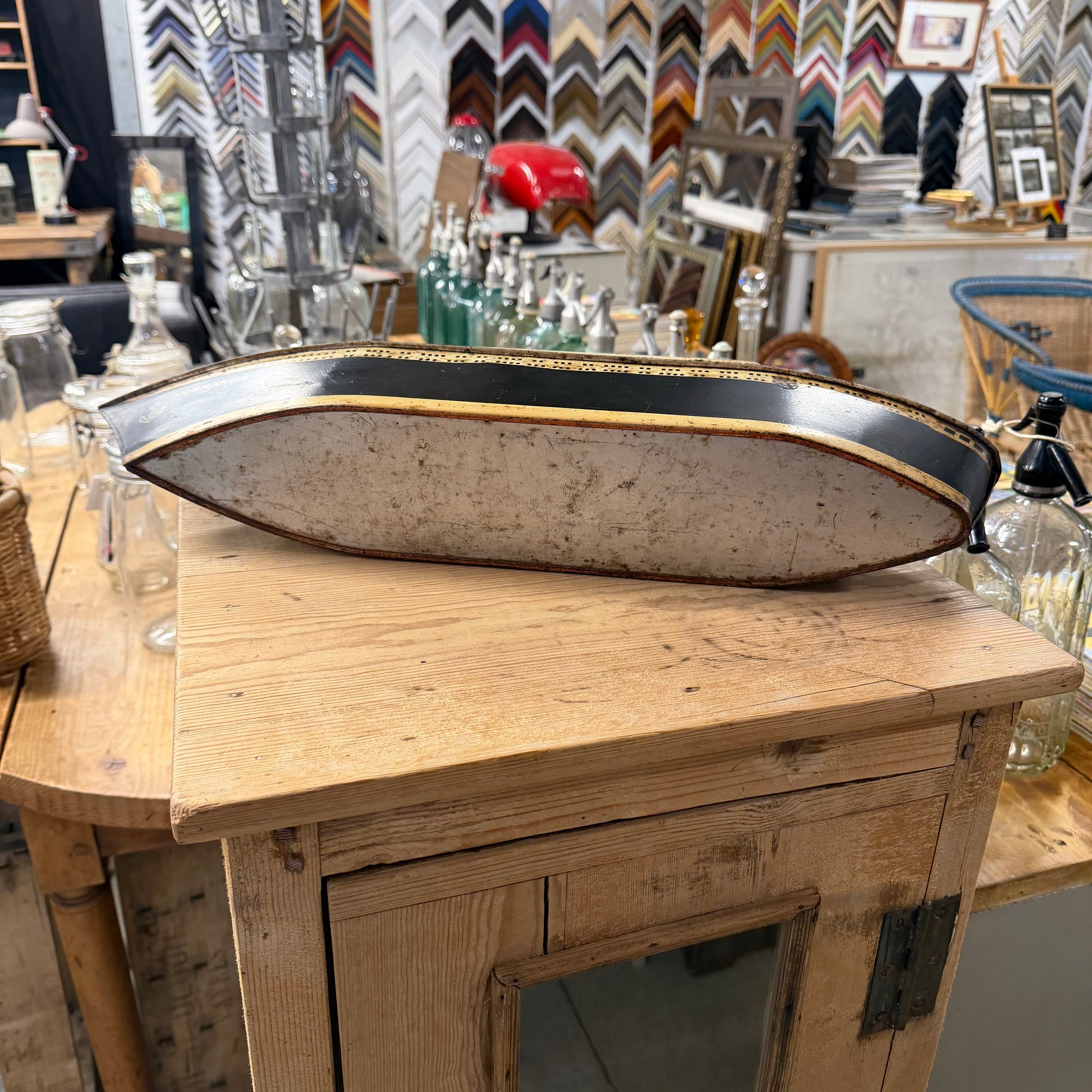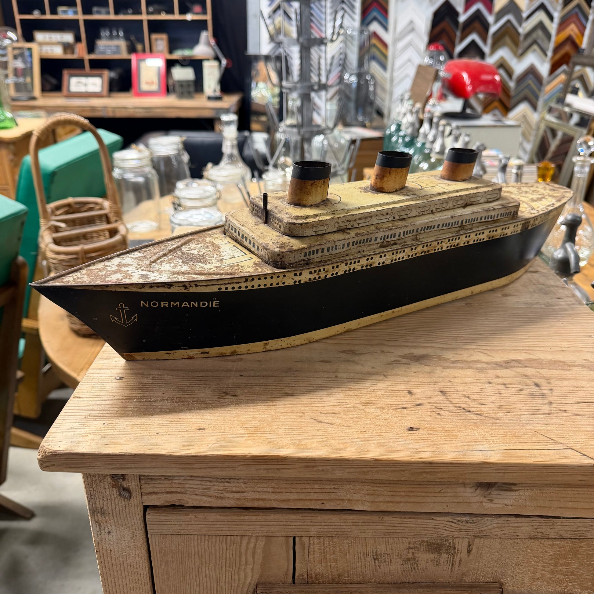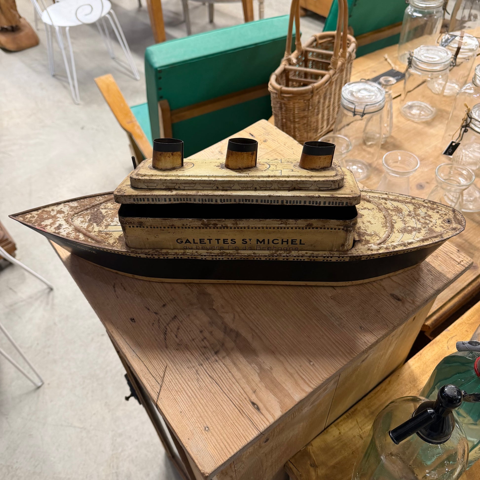 Découvrez cette boîte de gâteaux métallique exceptionnelle "Le Normandie" datant de 1935, une véritable pièce de collection pour les amateurs de vintage et d'histoire. Cet objet rare témoigne du savoir-faire artisanal et du design Art Déco de l'époque dorée. Parfaitement conservée, cette boîte incarne l'élégance française des années 1930 et constitue un investissement patrimonial unique. Idéale pour les collectionneurs avertis ou comme décoration murale authentique, elle apporte une touche de nostalgie et de prestige à tout intérieur.